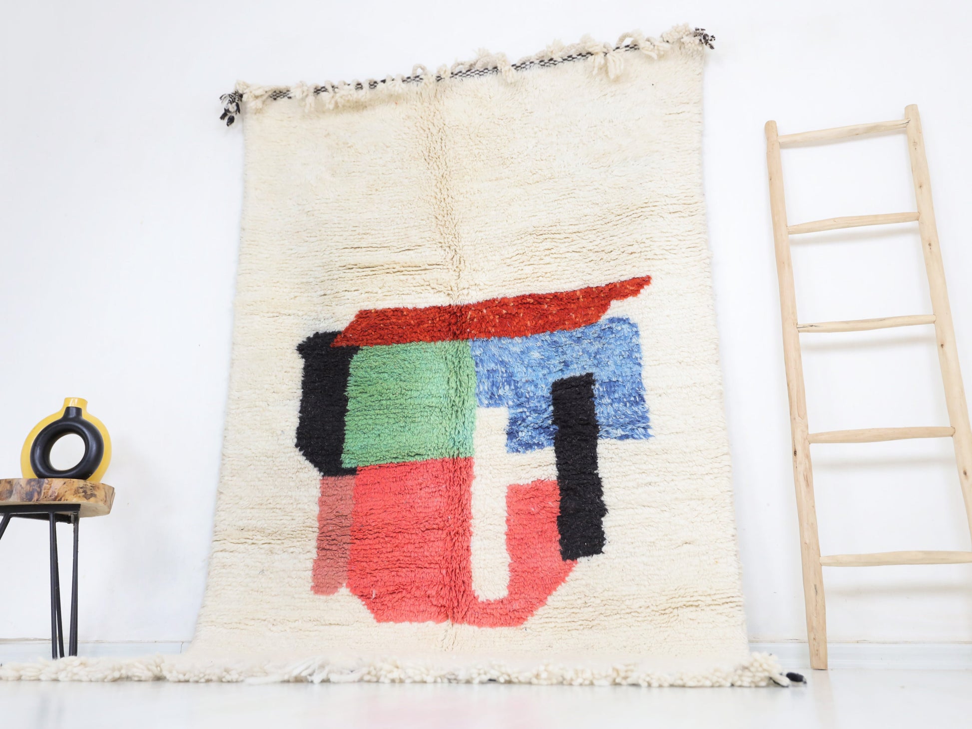 A singular moroccan rug, meticulously woven in the small city of Boujaad in Morocco's Chaouia-Ouardigha region.