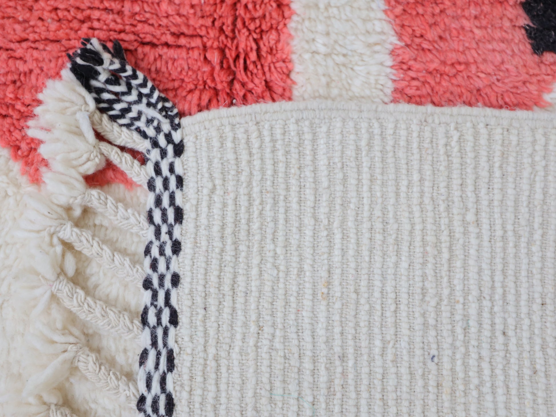 Azilal rugs boast abstract, painterly designs reminiscent of rugs from Ourika. What sets them apart is a vibrant color palette, achieved through the incorporation of cotton alongside wool.