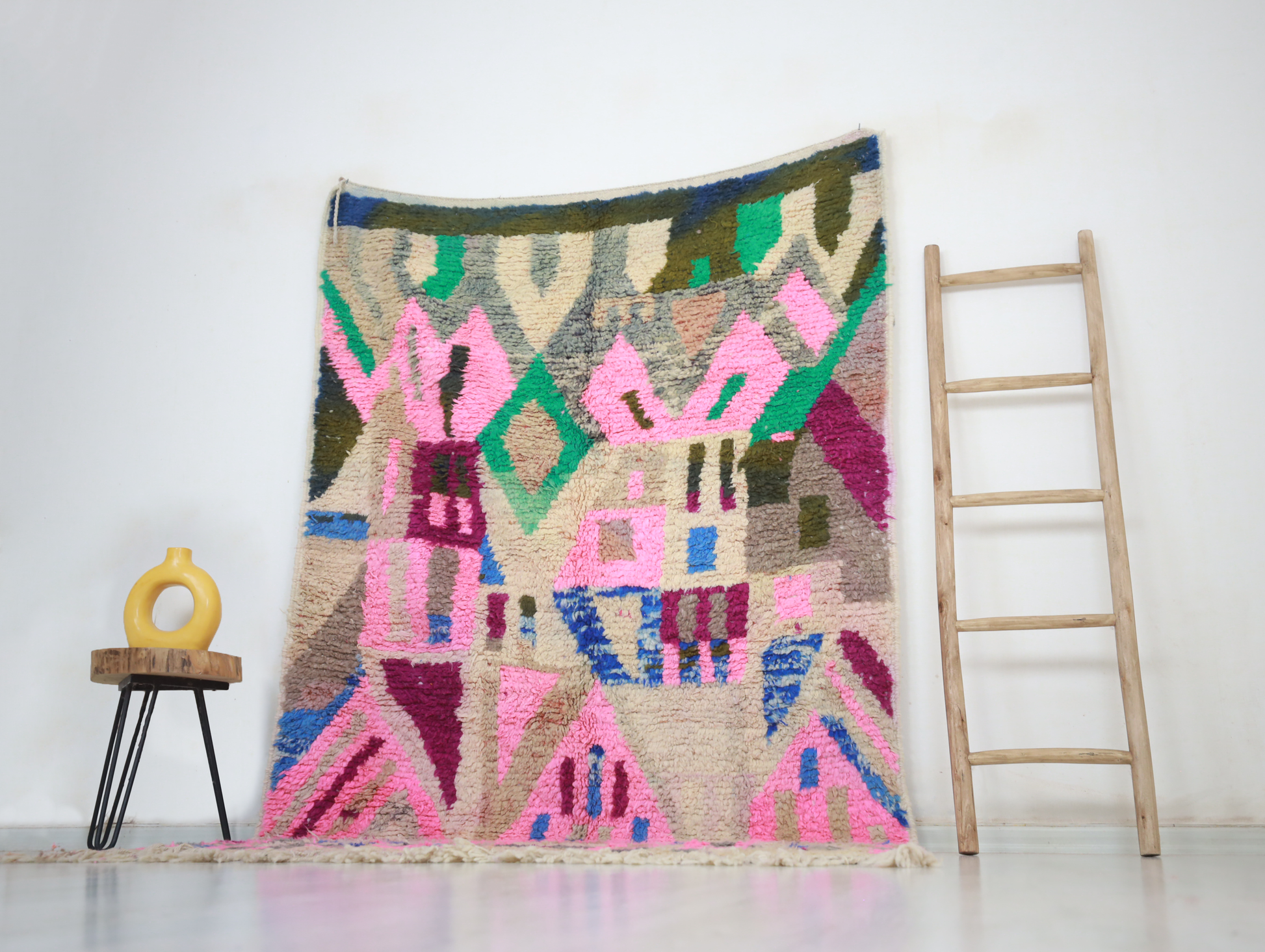 A singular moroccan rug, meticulously woven in the small city of Boujaad in Morocco's Chaouia-Ouardigha region.