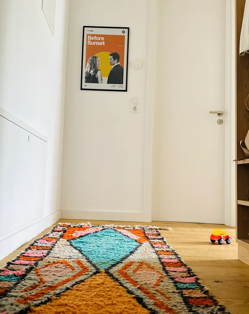 Beautiful rug, and it arrived so quickly from Morocco! The colour and patterns are really stunning. We will put an underlay down as well, to make it a bit more plush underfoot on our hard floor.
