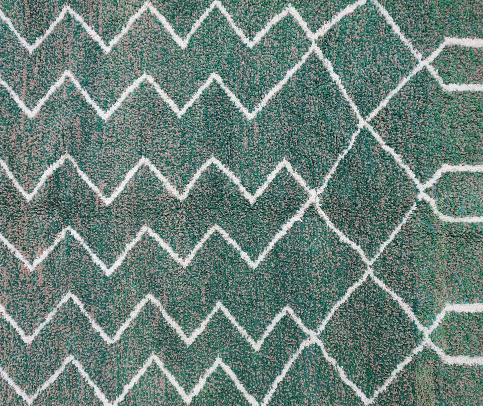 Wool, a sacred material for the Amazigh (Berber) people, forms the cornerstone of Moroccan rug design. Durable, long-lasting, and soft underfoot, wool is both functional and comfortable. In this piece, the wool pile is expertly knotted onto a wool foundation, adding substance and allowing it to gracefully embrace the floor.
