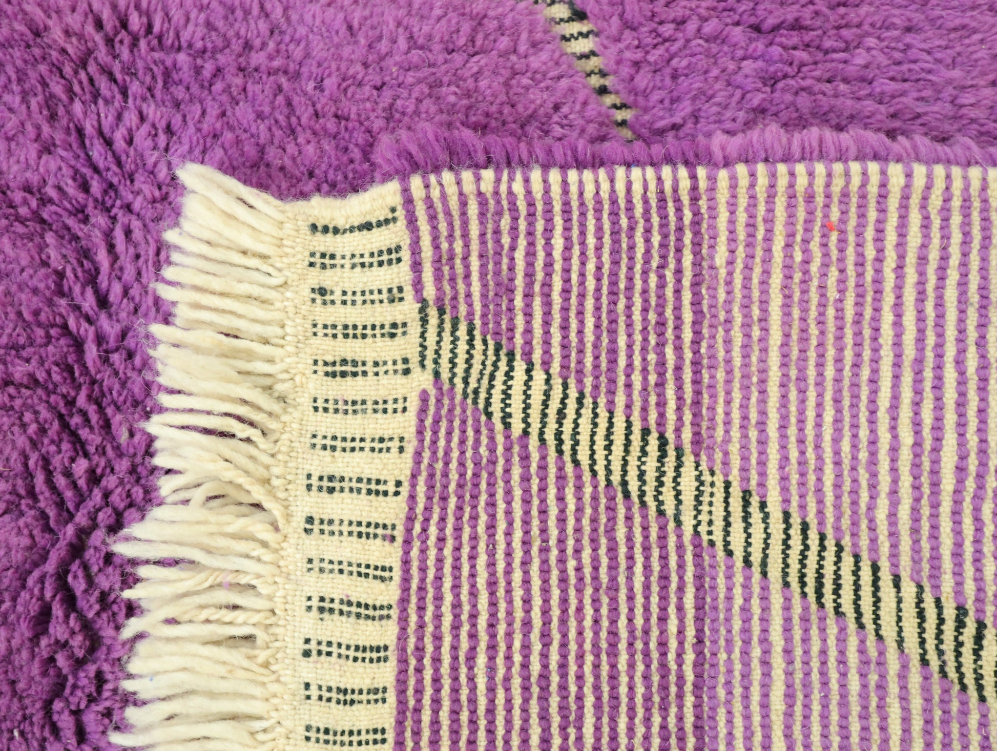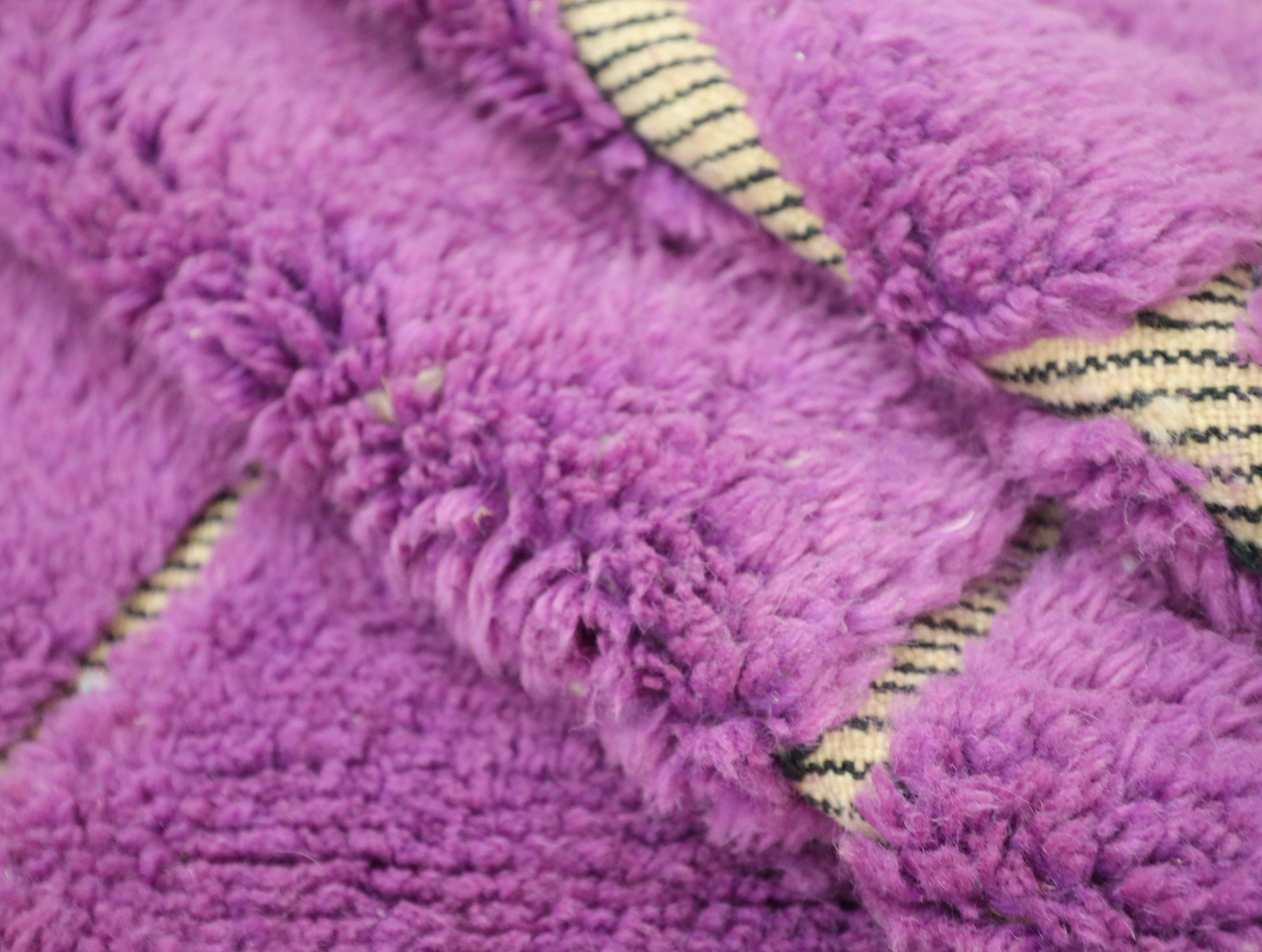 Wool, a sacred material for the Amazigh (Berber) people, forms the cornerstone of Moroccan rug design. Durable, long-lasting, and soft underfoot, wool is both functional and comfortable. In this piece, the wool pile is expertly knotted onto a wool foundation, adding substance and allowing it to gracefully embrace the floor.