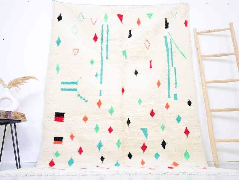 A singular moroccan rug, meticulously woven in the small city of Boujaad in Morocco's Chaouia-Ouardigha region.