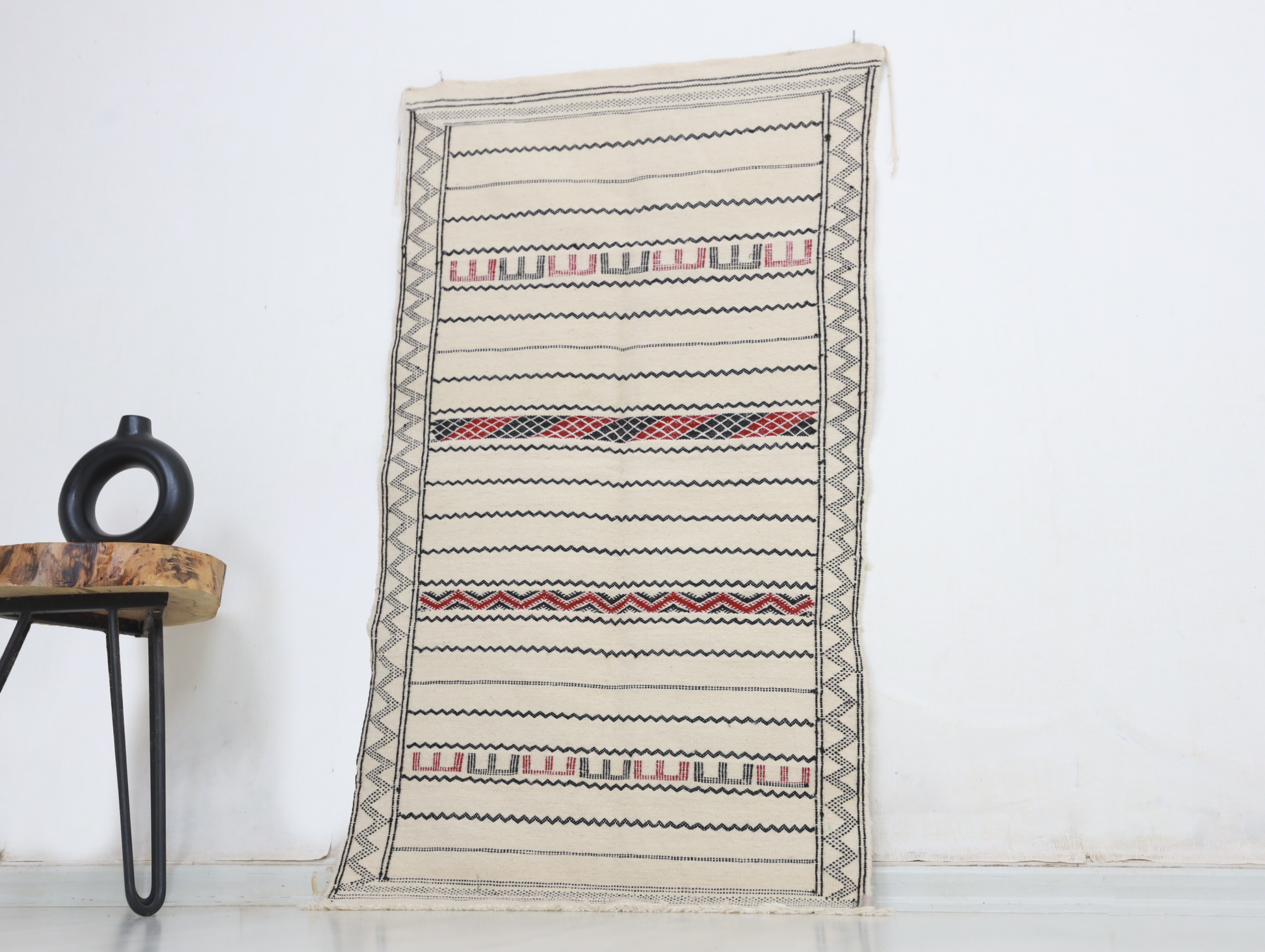 A singular moroccan rug, meticulously woven in the small city of Boujaad in Morocco's Chaouia-Ouardigha region.