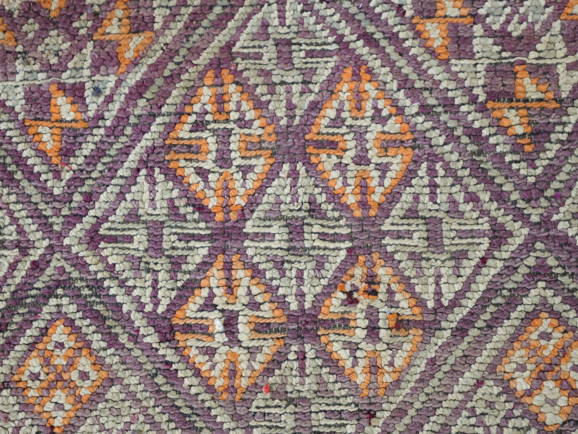 Wool, a sacred material for the Amazigh (Berber) people, forms the cornerstone of Moroccan rug design. Durable, long-lasting, and soft underfoot, wool is both functional and comfortable. In this piece, the wool pile is expertly knotted onto a wool foundation, adding substance and allowing it to gracefully embrace the floor.