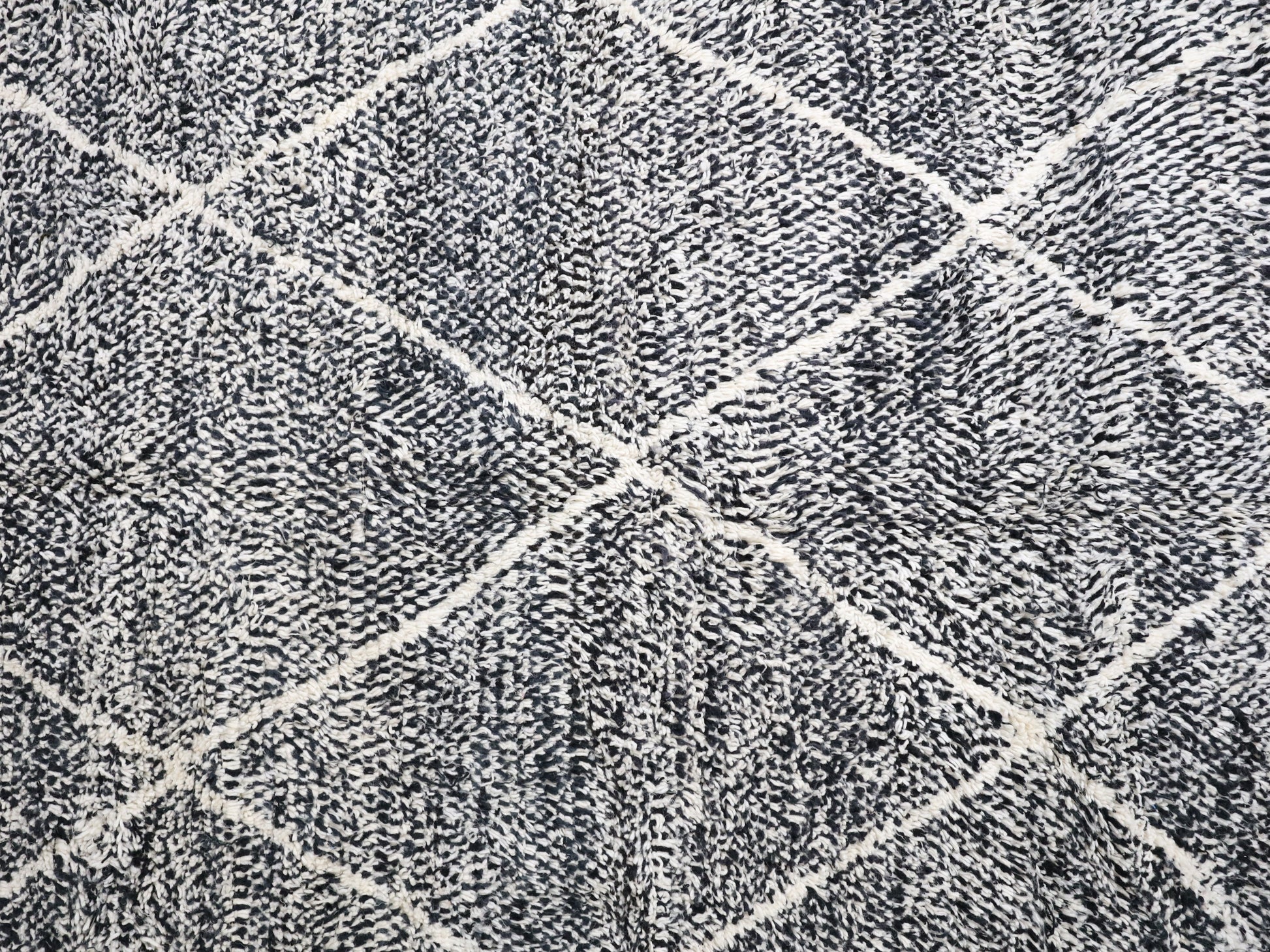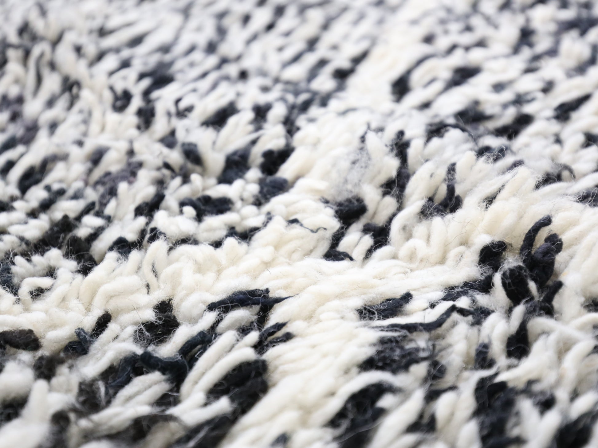 Wool, a sacred material for the Amazigh (Berber) people, forms the cornerstone of Moroccan rug design. Durable, long-lasting, and soft underfoot, wool is both functional and comfortable. In this piece, the wool pile is expertly knotted onto a wool foundation, adding substance and allowing it to gracefully embrace the floor.