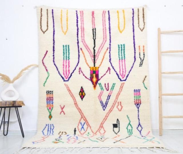 Azilal rugs boast abstract, painterly designs reminiscent of rugs from Ourika. What sets them apart is a vibrant color palette, achieved through the incorporation of cotton alongside wool.