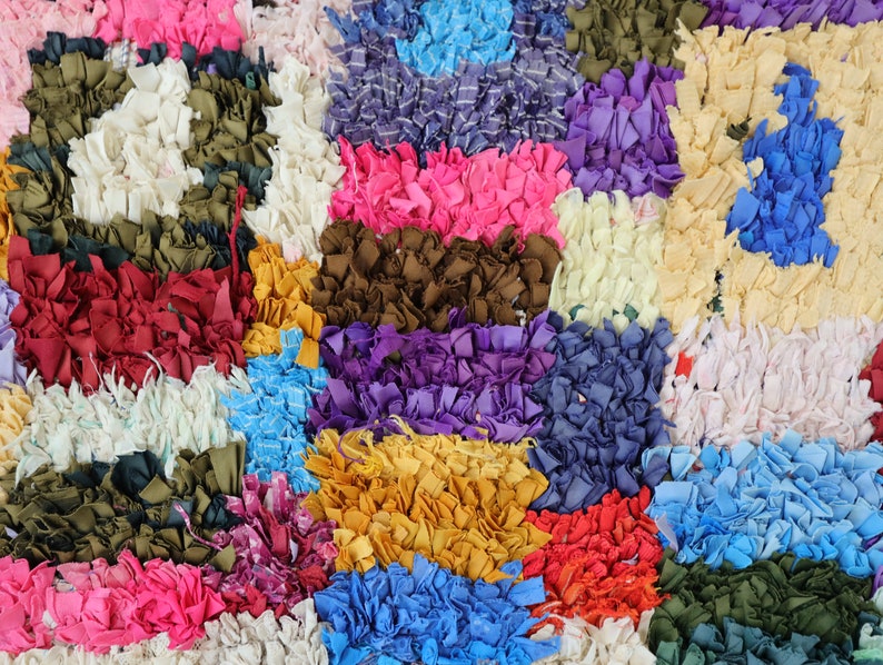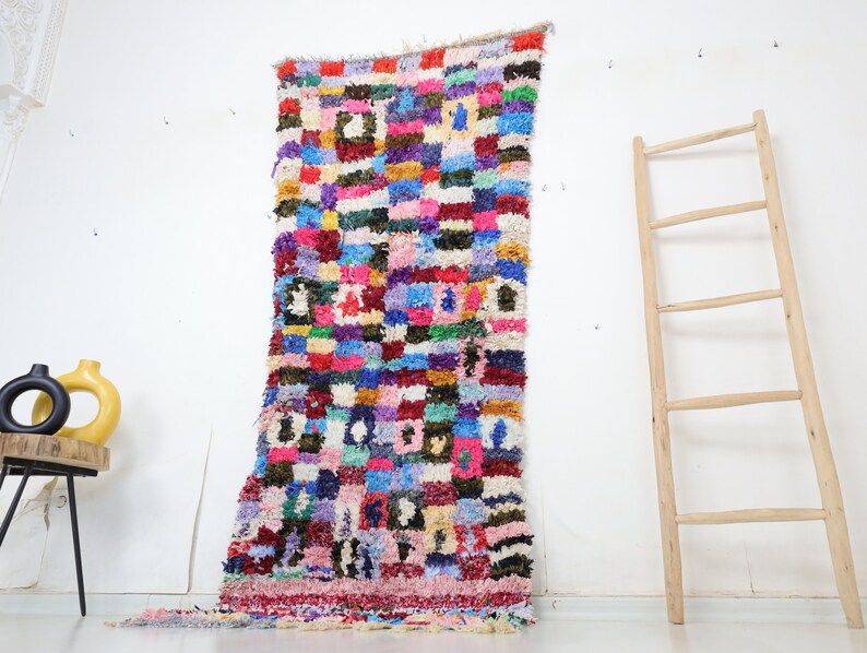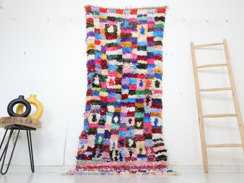 Azilal rugs boast abstract, painterly designs reminiscent of rugs from Ourika. What sets them apart is a vibrant color palette, achieved through the incorporation of cotton alongside wool..