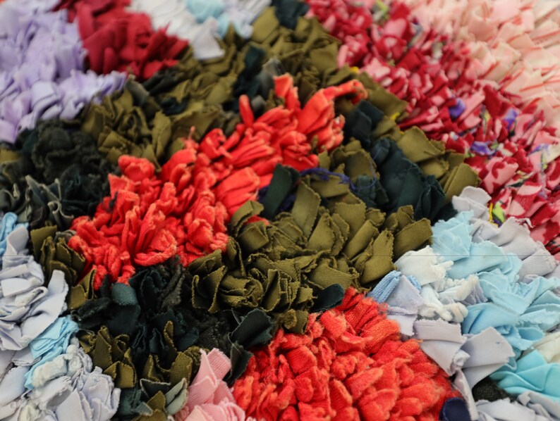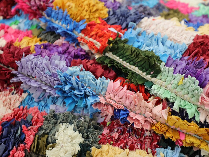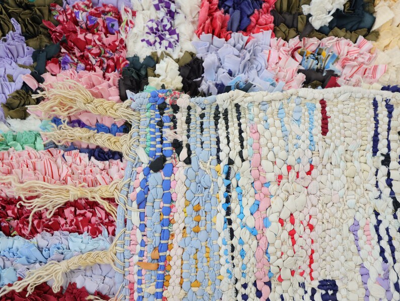 An unparalleled vintage masterpiece, carefully crafted by Berber Tribes in the Boucherouite style using Upcycled Wool textiles.