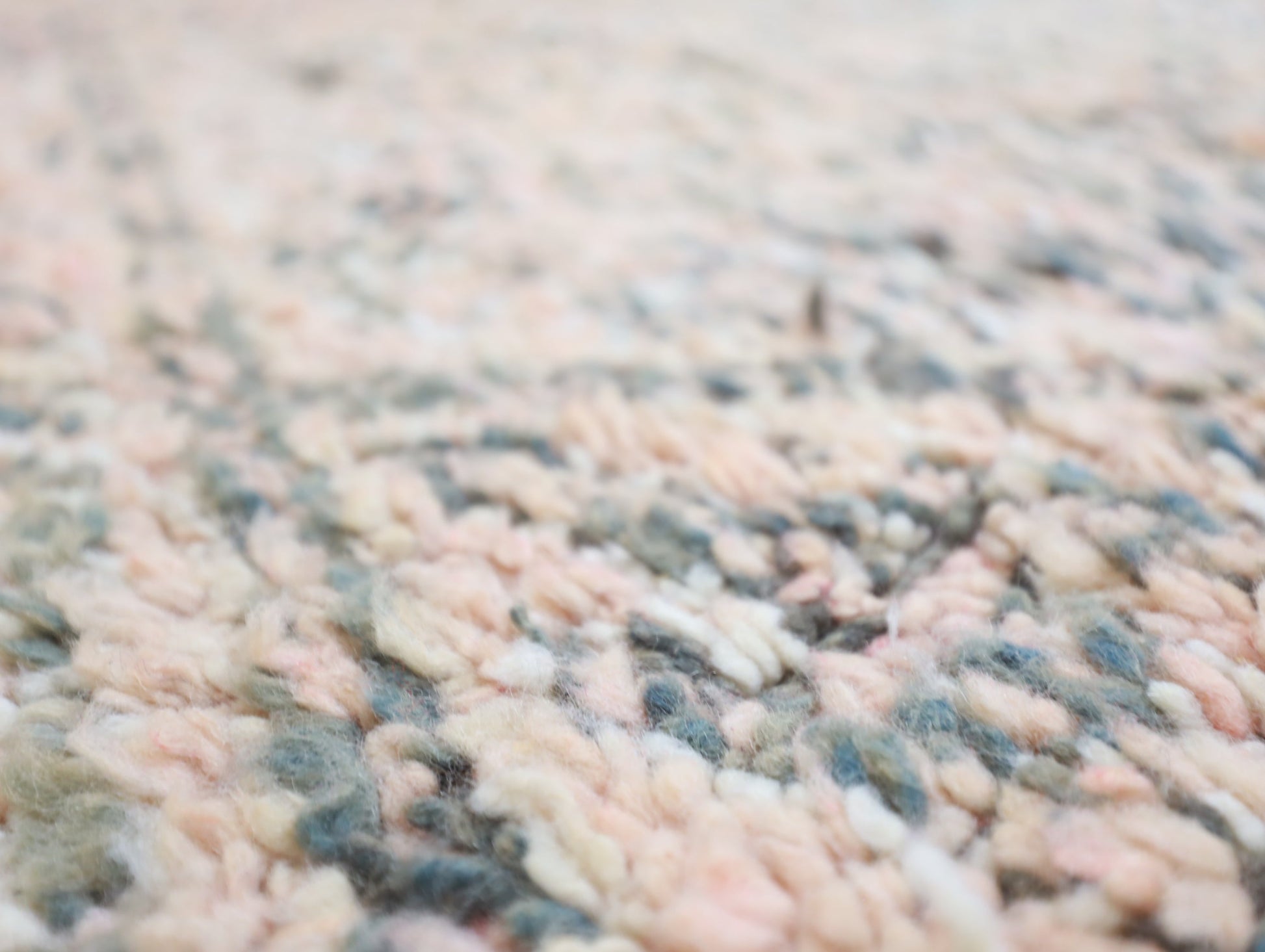 Wool, a sacred material for the Amazigh (Berber) people, forms the cornerstone of Moroccan rug design. Durable, long-lasting, and soft underfoot, wool is both functional and comfortable. In this piece, the wool pile is expertly knotted onto a wool foundation, adding substance and allowing it to gracefully embrace the floor.