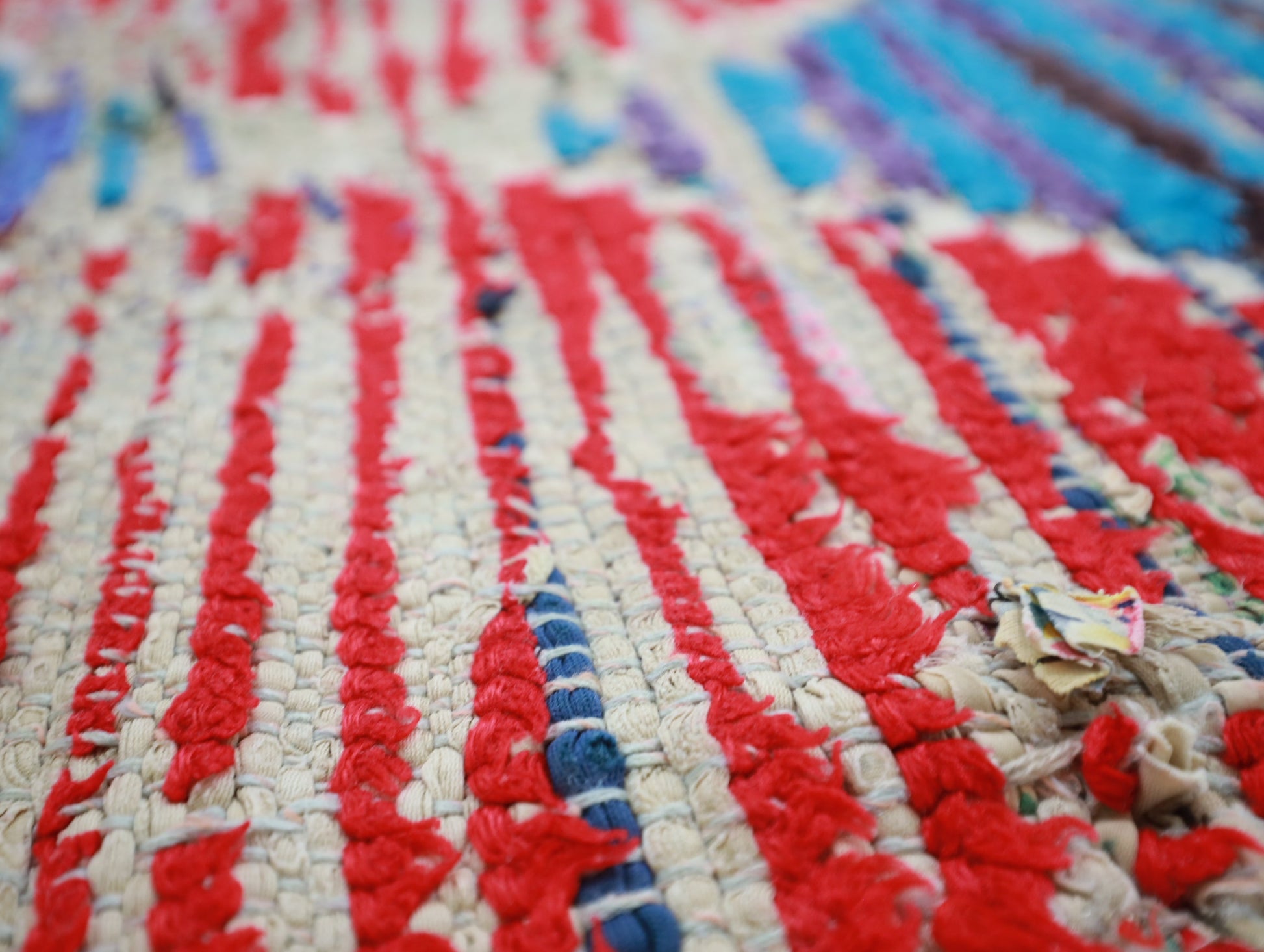 An unparalleled vintage masterpiece, carefully crafted by Berber Tribes in the Boucherouite style using Upcycled Wool textiles.