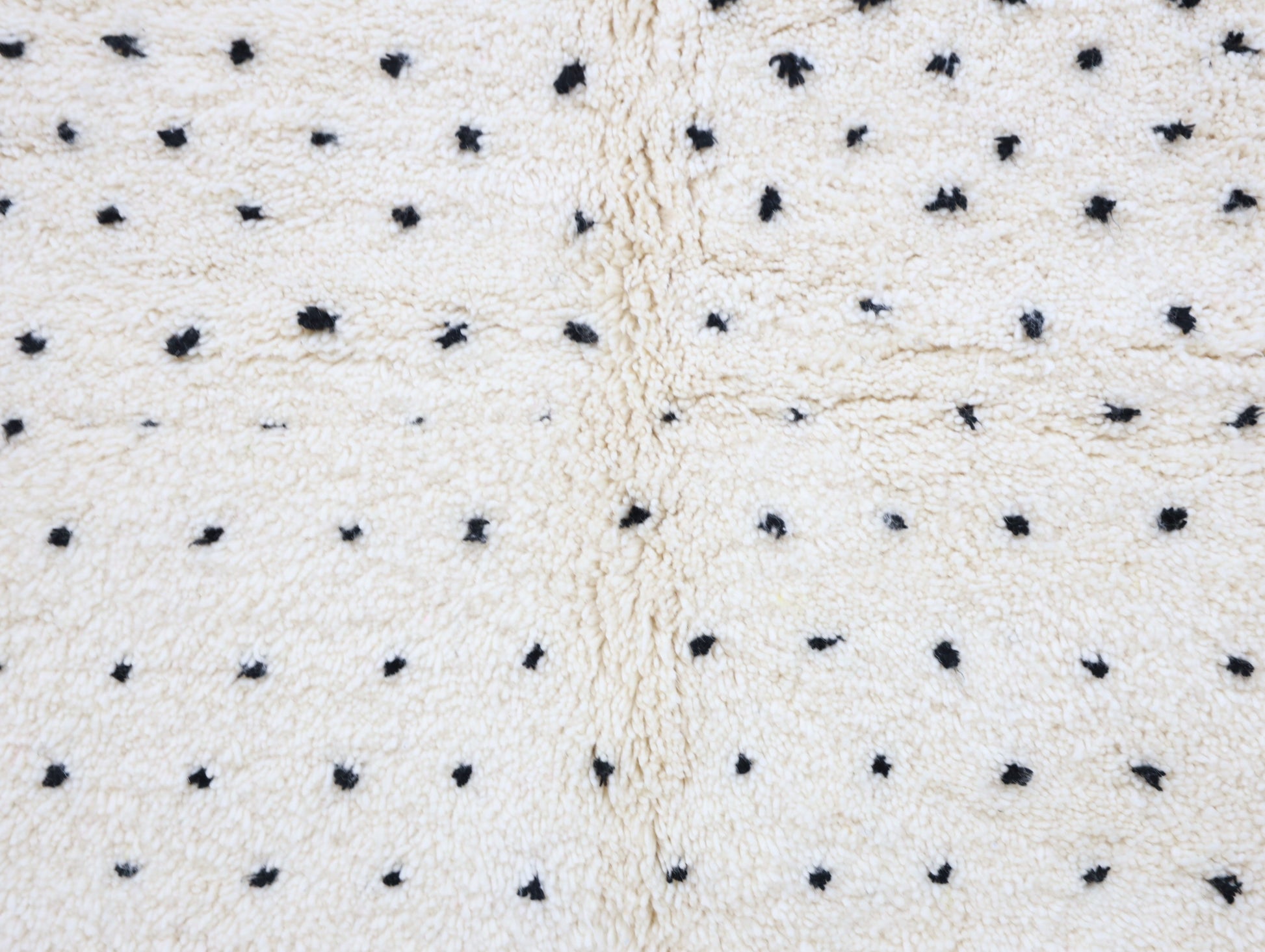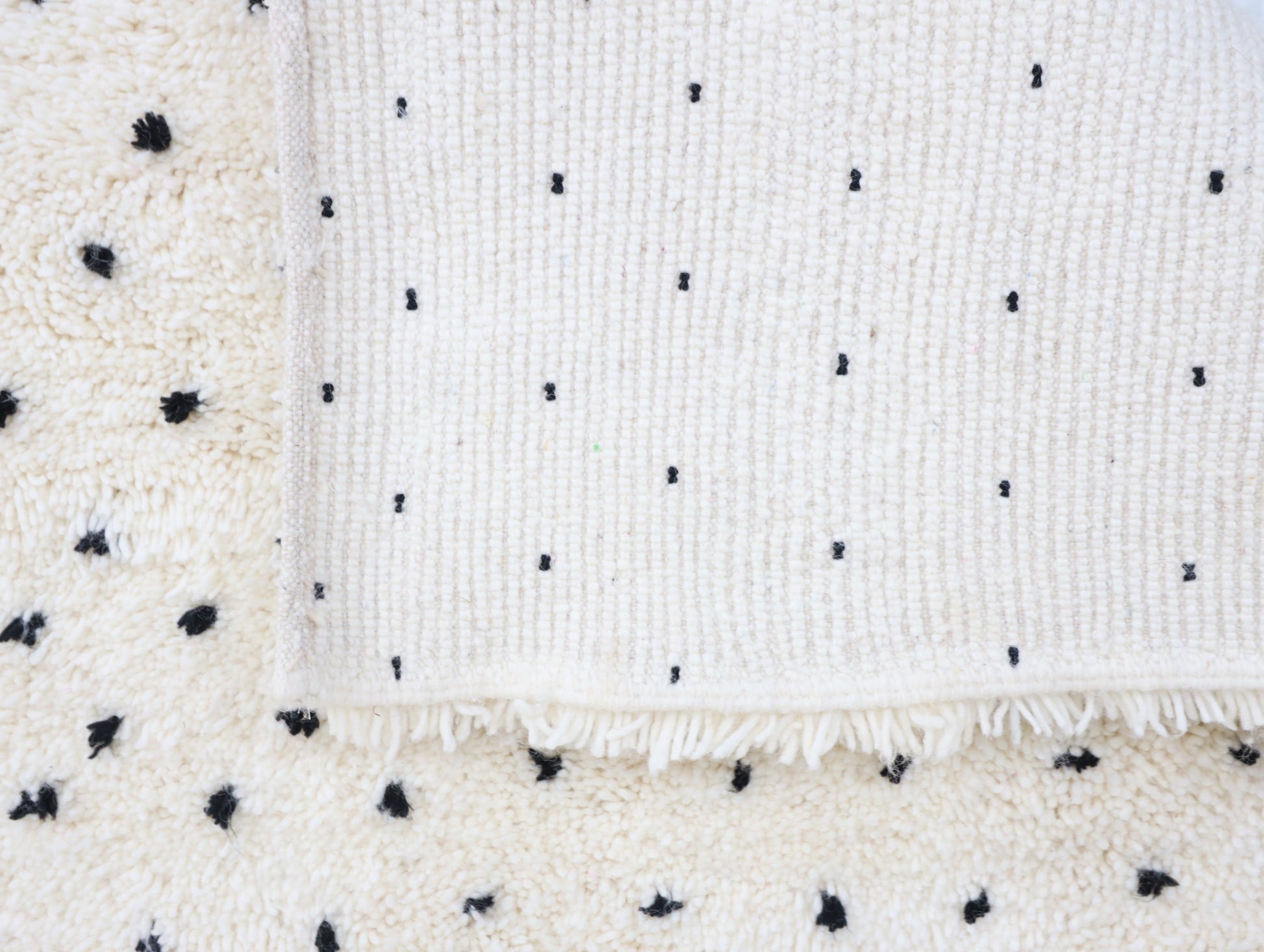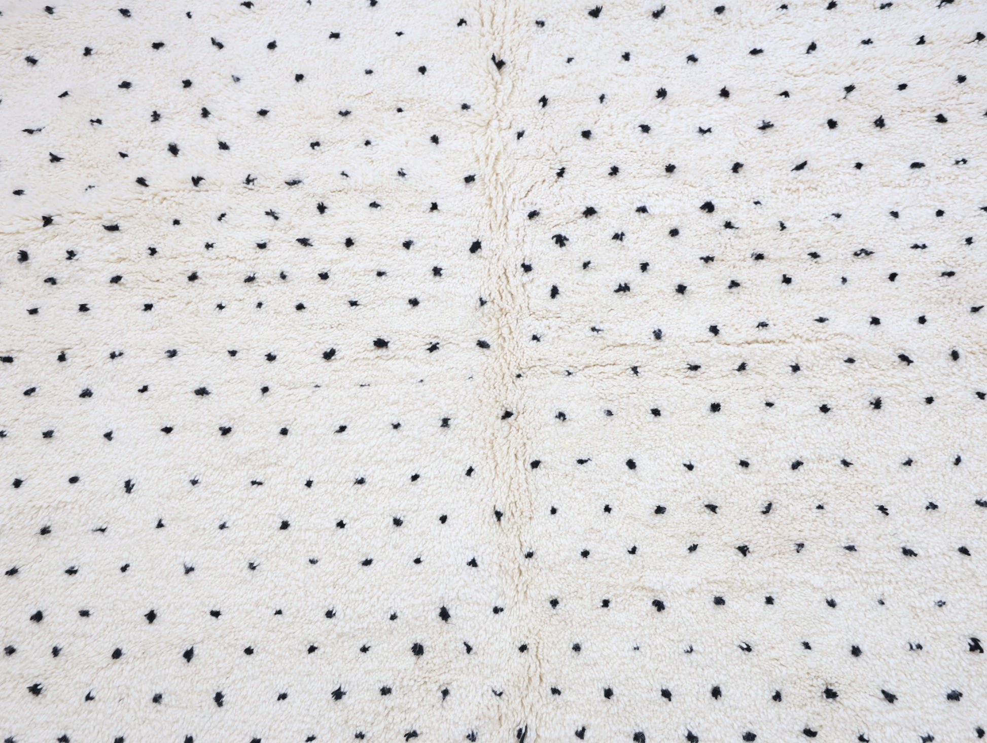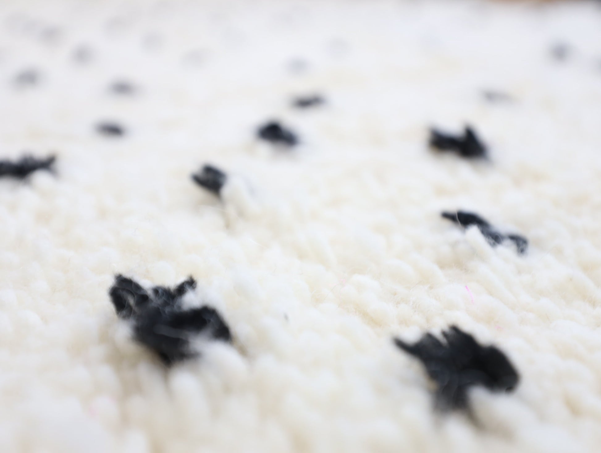 Wool, a sacred material for the Amazigh (Berber) people, forms the cornerstone of Moroccan rug design. Durable, long-lasting, and soft underfoot, wool is both functional and comfortable. In this piece, the wool pile is expertly knotted onto a wool foundation, adding substance and allowing it to gracefully embrace the floor.