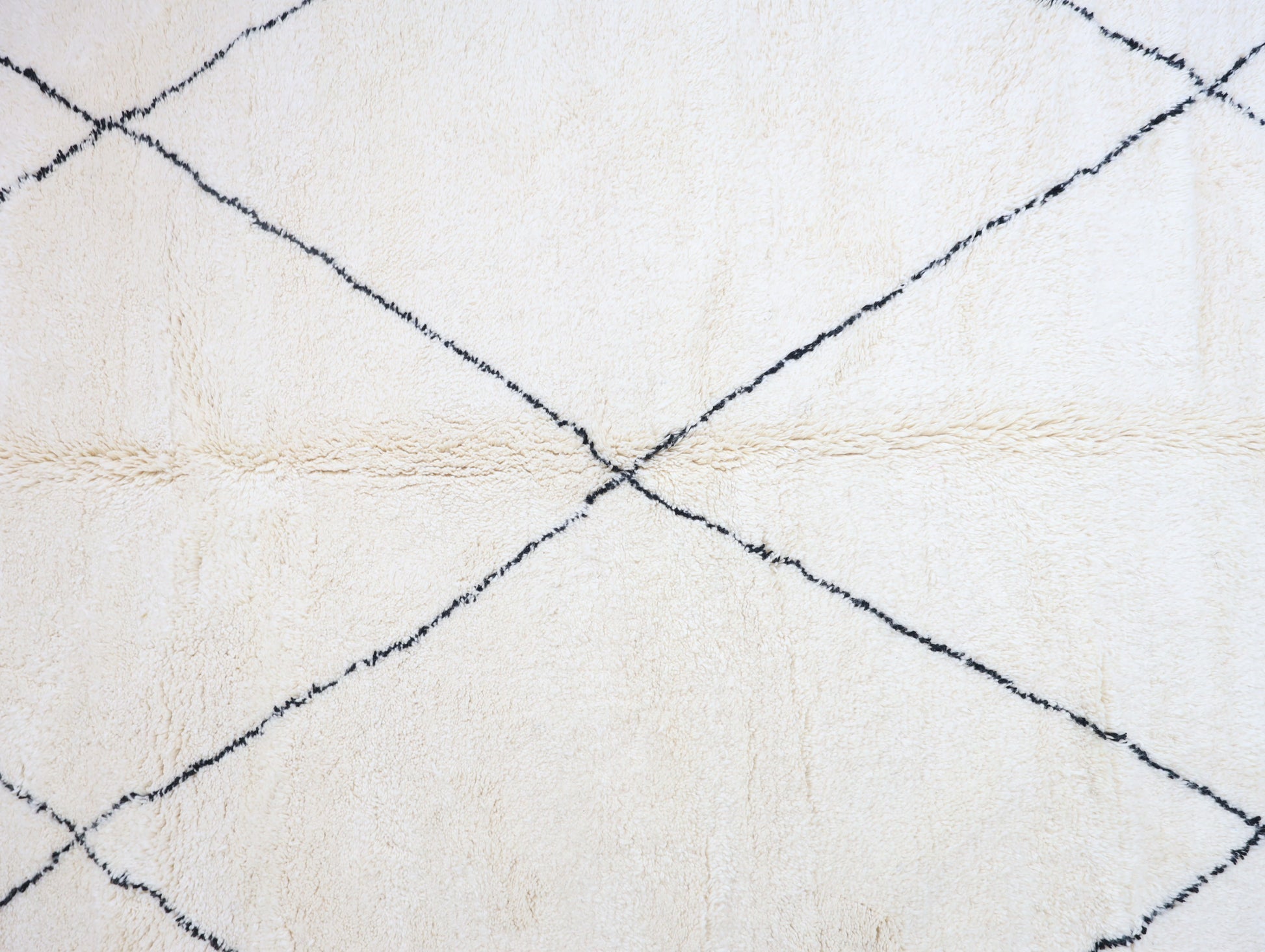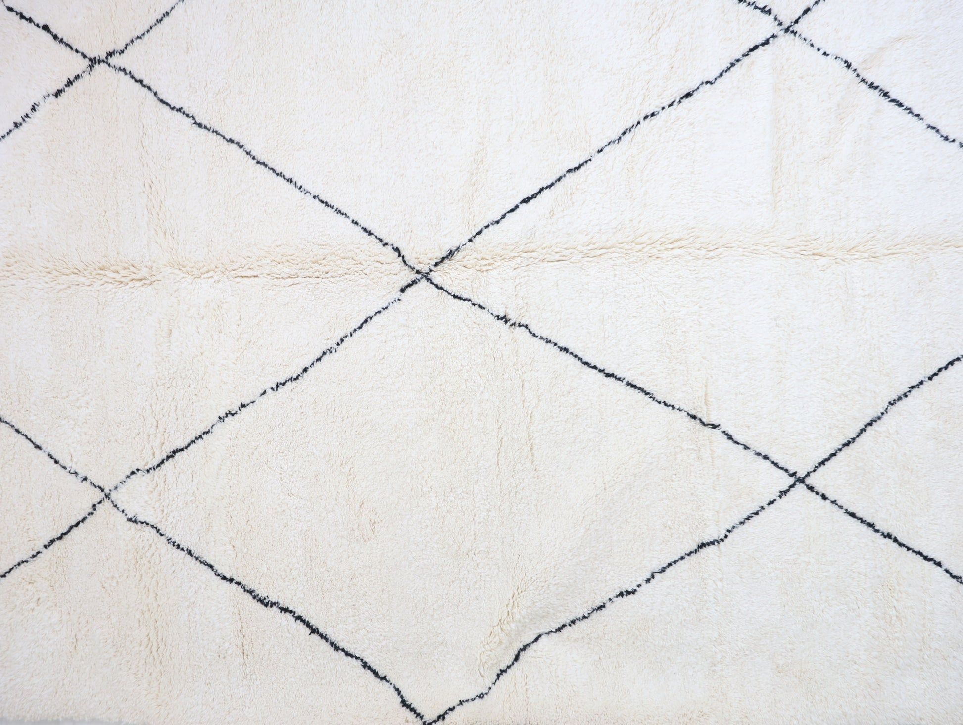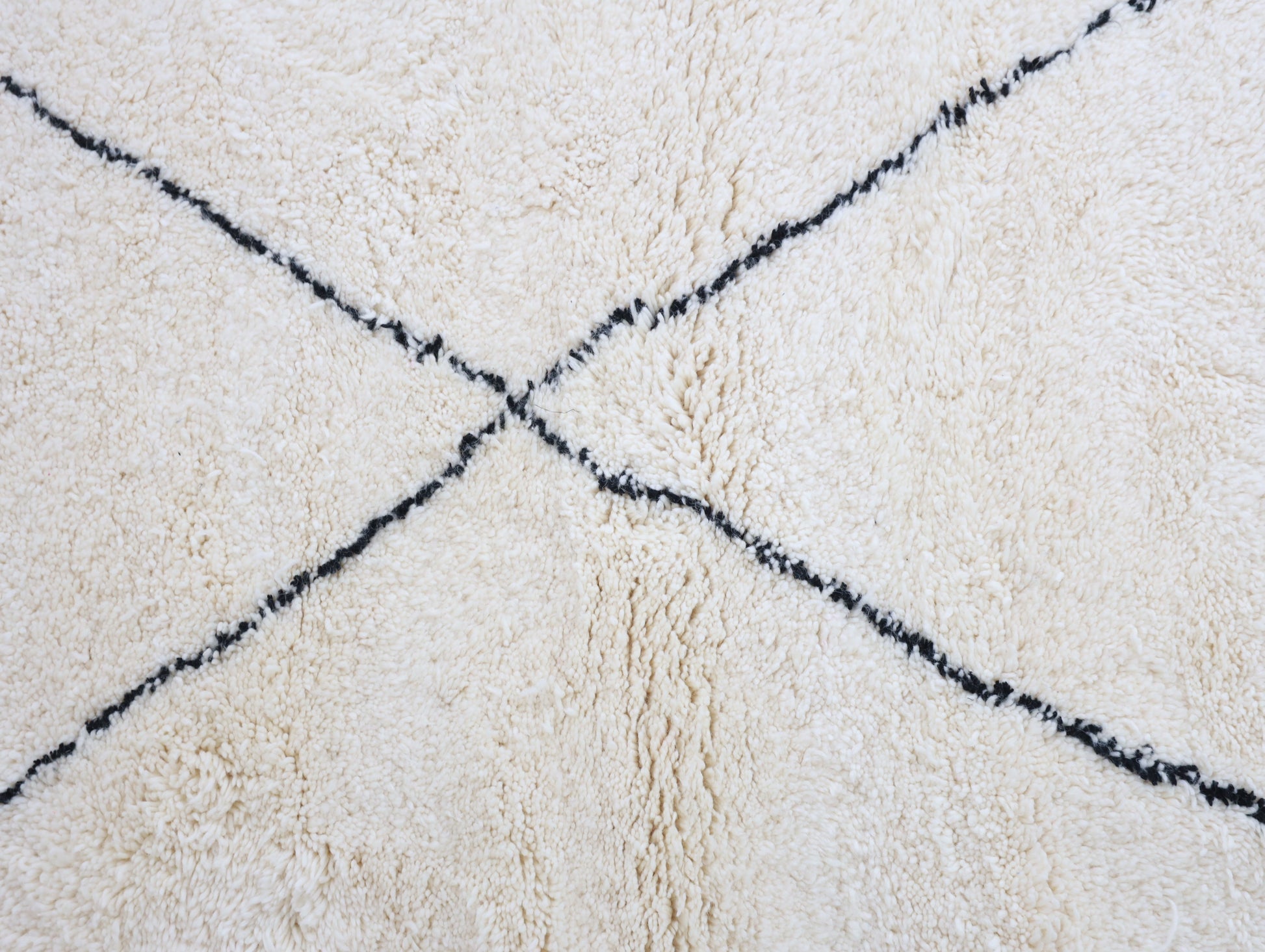 Wool, a sacred material for the Amazigh (Berber) people, forms the cornerstone of Moroccan rug design. Durable, long-lasting, and soft underfoot, wool is both functional and comfortable. In this piece, the wool pile is expertly knotted onto a wool foundation, adding substance and allowing it to gracefully embrace the floor.