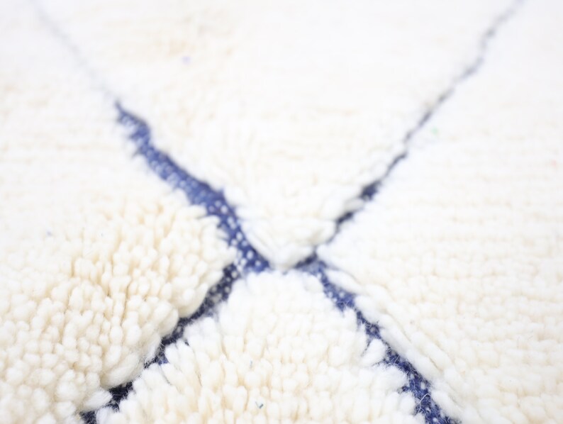 Wool, a sacred material for the Amazigh (Berber) people, forms the cornerstone of Moroccan rug design. Durable, long-lasting, and soft underfoot, wool is both functional and comfortable. In this piece, the wool pile is expertly knotted onto a wool foundation, adding substance and allowing it to gracefully embrace the floor.