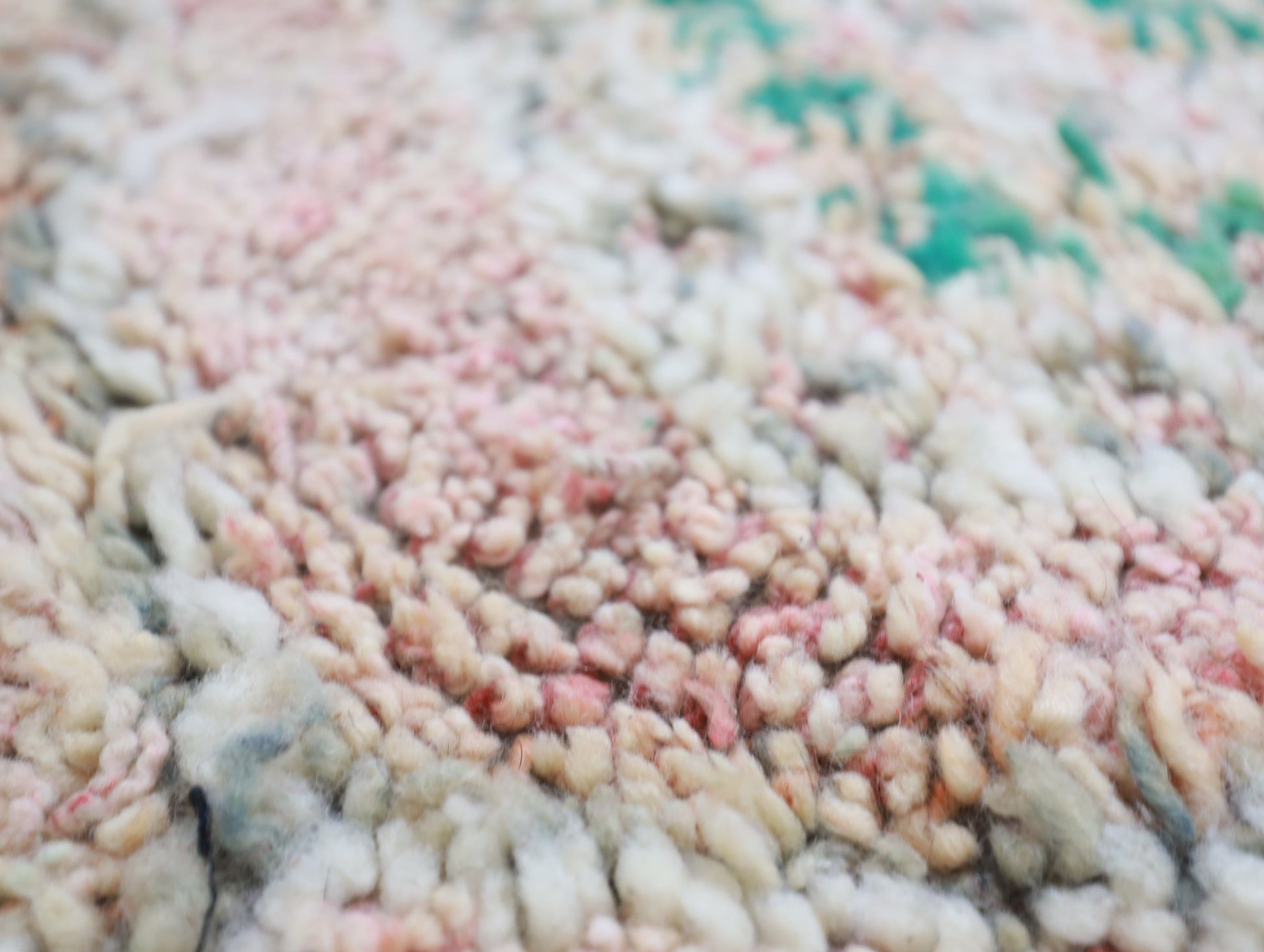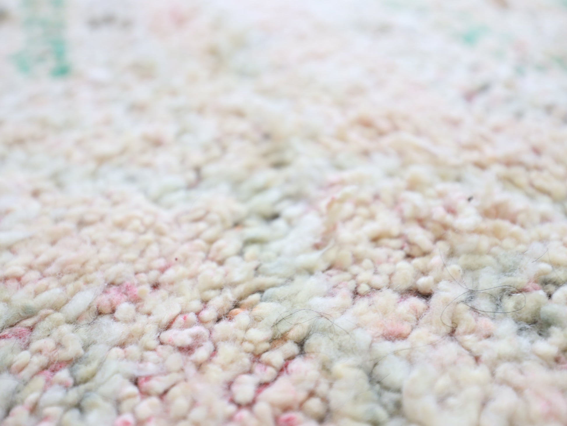 Wool, a sacred material for the Amazigh (Berber) people, forms the cornerstone of Moroccan rug design. Durable, long-lasting, and soft underfoot, wool is both functional and comfortable. In this piece, the wool pile is expertly knotted onto a wool foundation, adding substance and allowing it to gracefully embrace the floor.