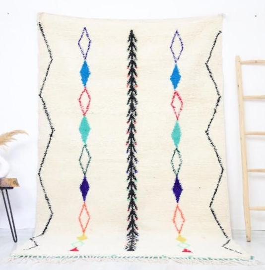 Azilal rugs boast abstract, painterly designs reminiscent of rugs from Ourika. What sets them apart is a vibrant color palette, achieved through the incorporation of cotton alongside wool.