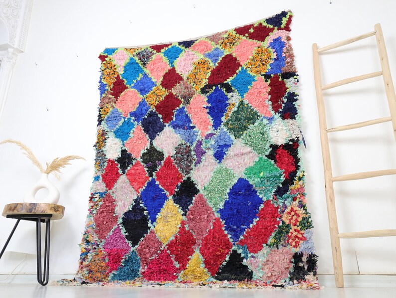 An unparalleled vintage masterpiece, carefully crafted by Berber Tribes in the Boucherouite style using Upcycled Wool textiles.