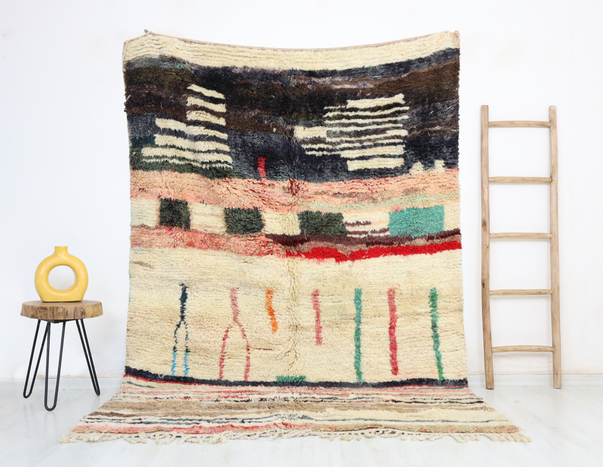 A singular moroccan rug, meticulously woven in the small city of Boujaad in Morocco's Chaouia-Ouardigha region.