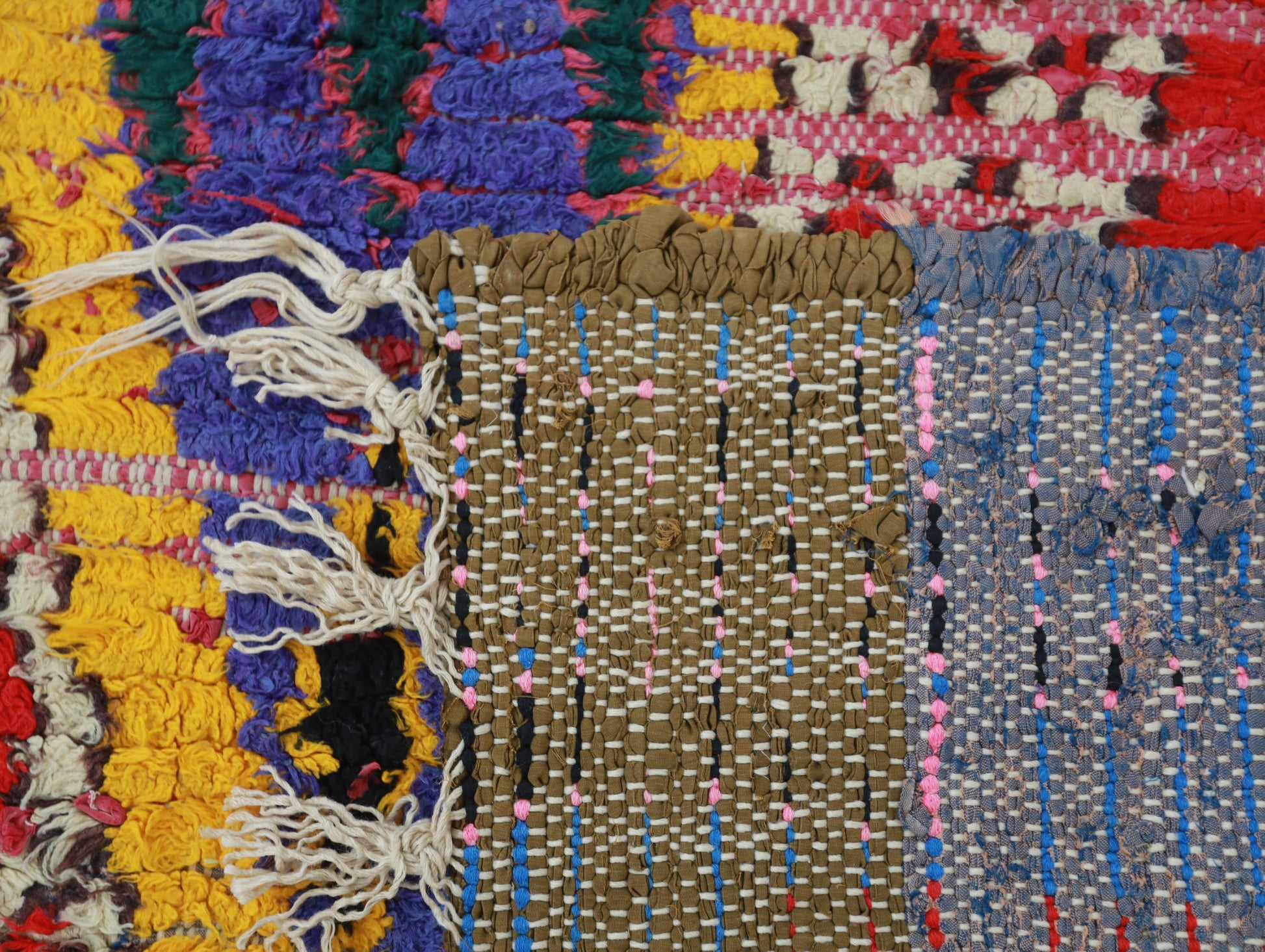 Reversible rugs without pile, also known as kilims, made by hand-weaving horizontal weft yarns through vertical warp yarns