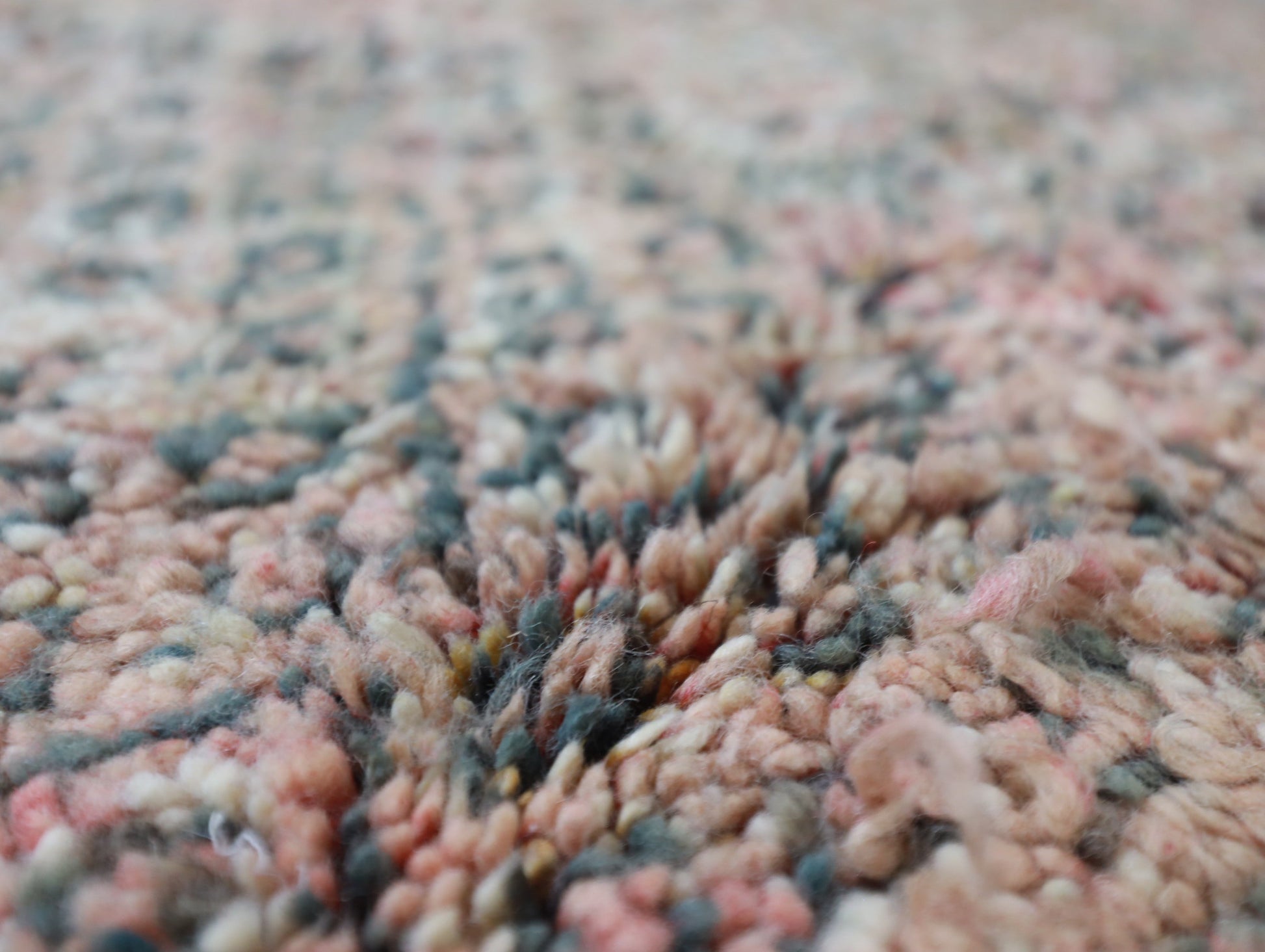 Wool, a sacred material for the Amazigh (Berber) people, forms the cornerstone of Moroccan rug design. Durable, long-lasting, and soft underfoot, wool is both functional and comfortable. In this piece, the wool pile is expertly knotted onto a wool foundation, adding substance and allowing it to gracefully embrace the floor.