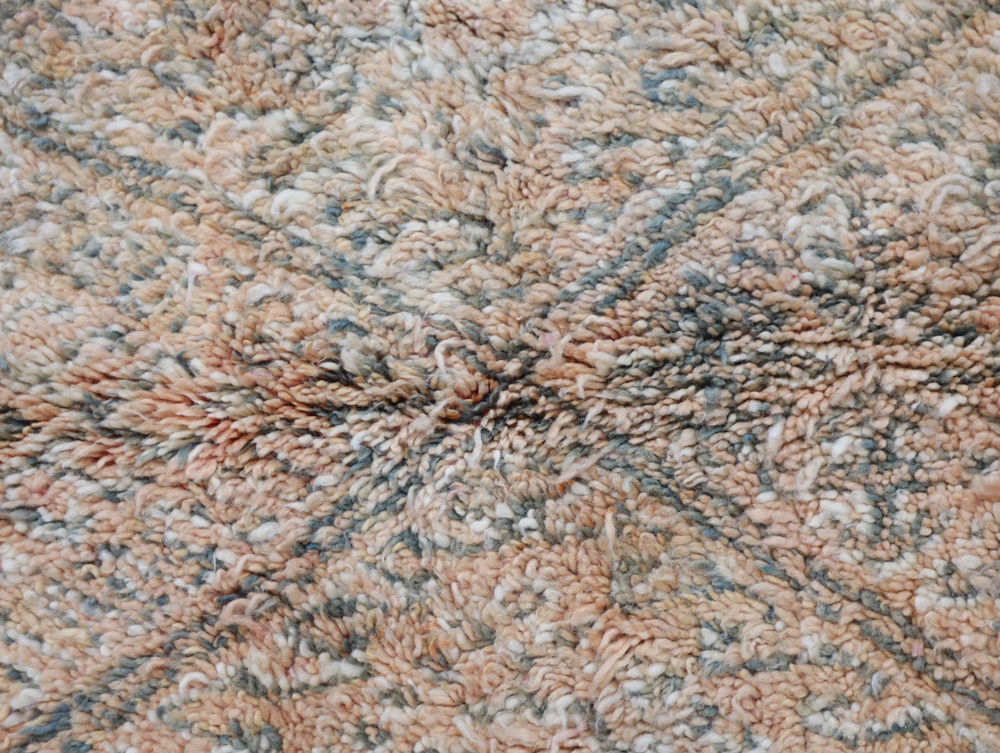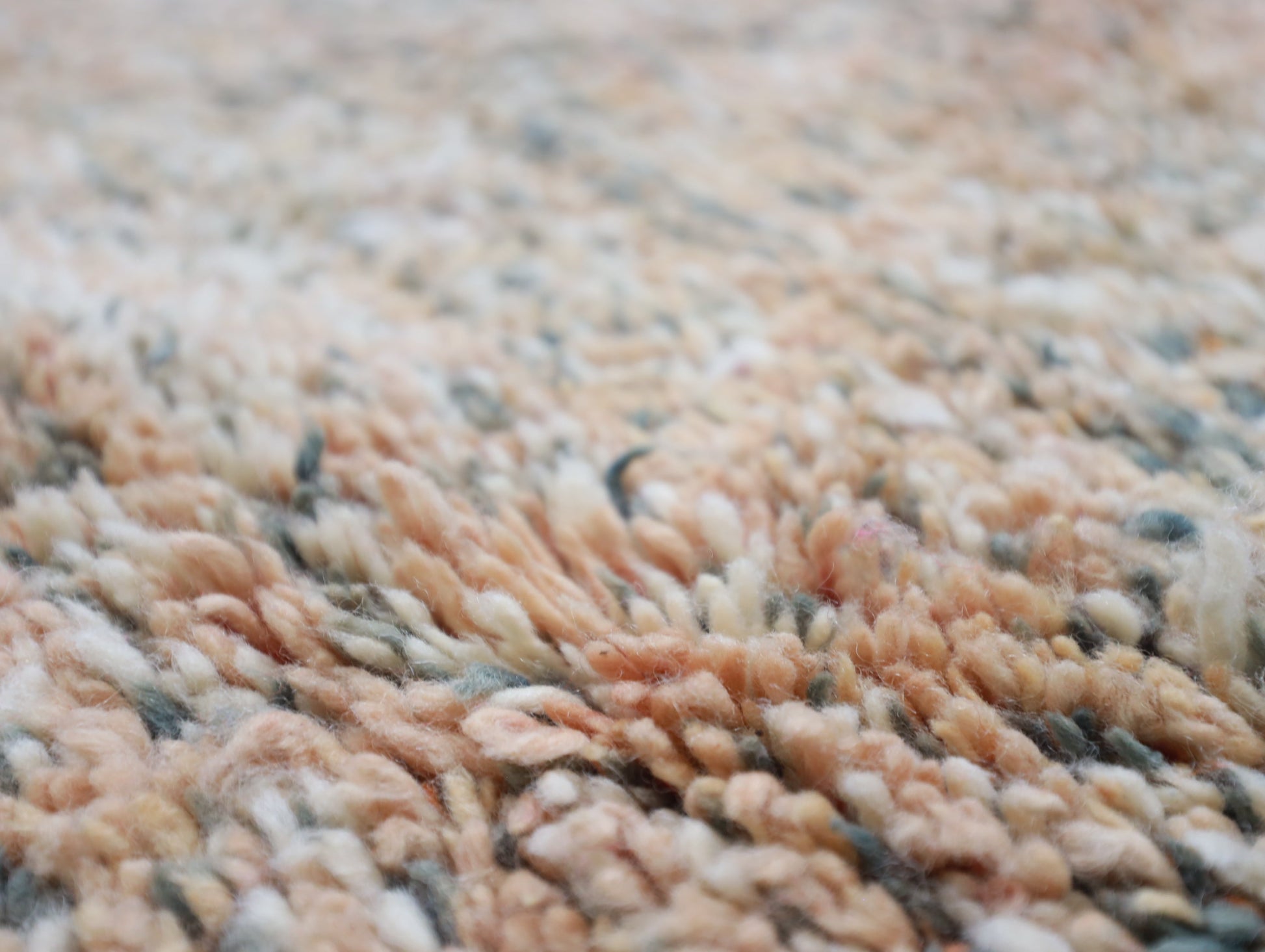 Wool, a sacred material for the Amazigh (Berber) people, forms the cornerstone of Moroccan rug design. Durable, long-lasting, and soft underfoot, wool is both functional and comfortable. In this piece, the wool pile is expertly knotted onto a wool foundation, adding substance and allowing it to gracefully embrace the floor.