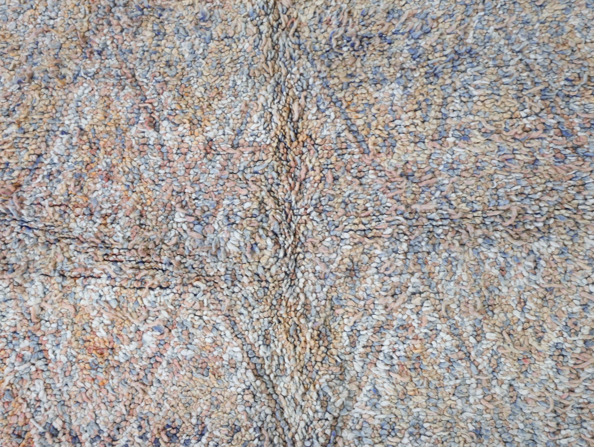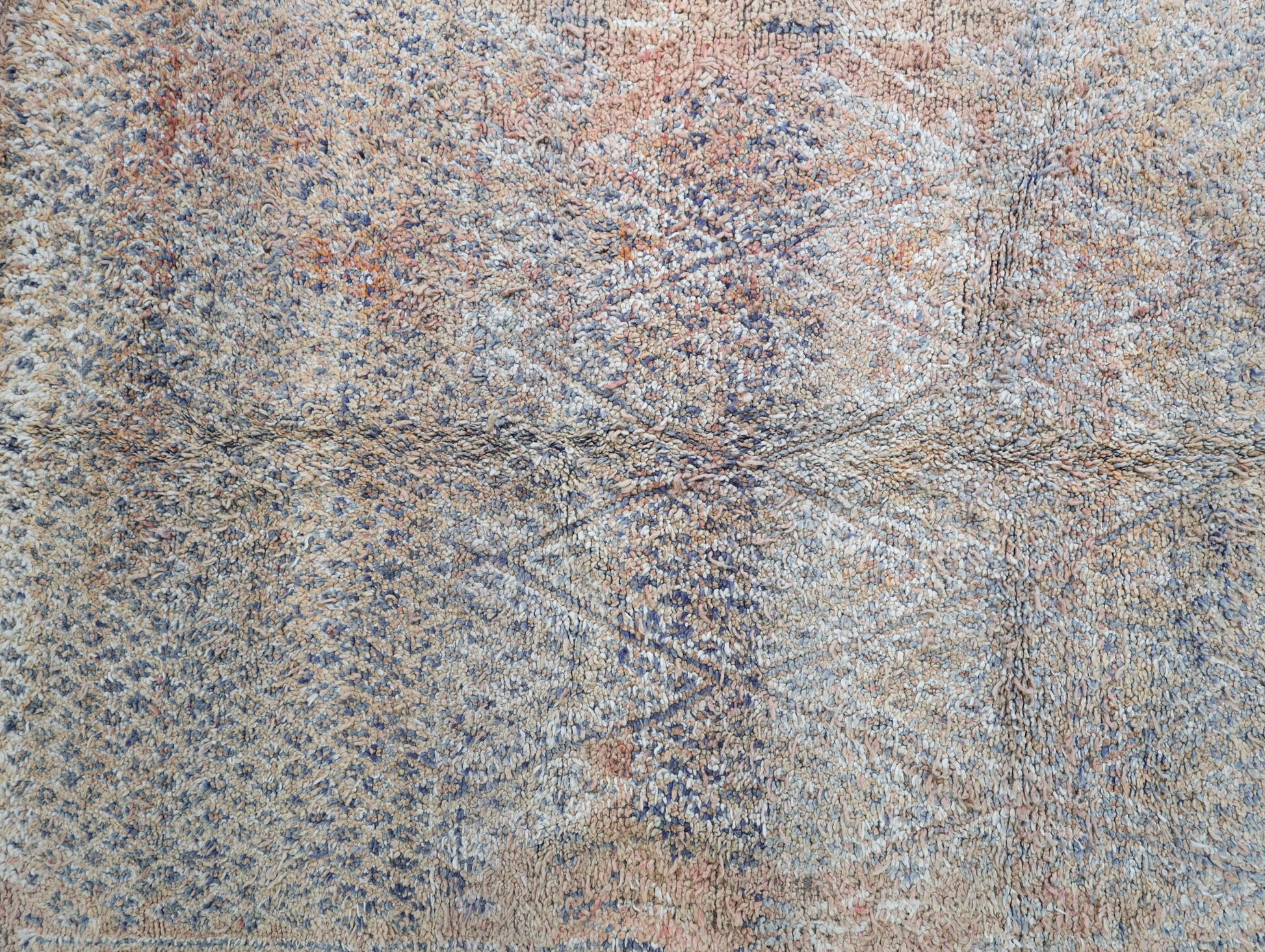 Wool, a sacred material for the Amazigh (Berber) people, forms the cornerstone of Moroccan rug design. Durable, long-lasting, and soft underfoot, wool is both functional and comfortable. In this piece, the wool pile is expertly knotted onto a wool foundation, adding substance and allowing it to gracefully embrace the floor.