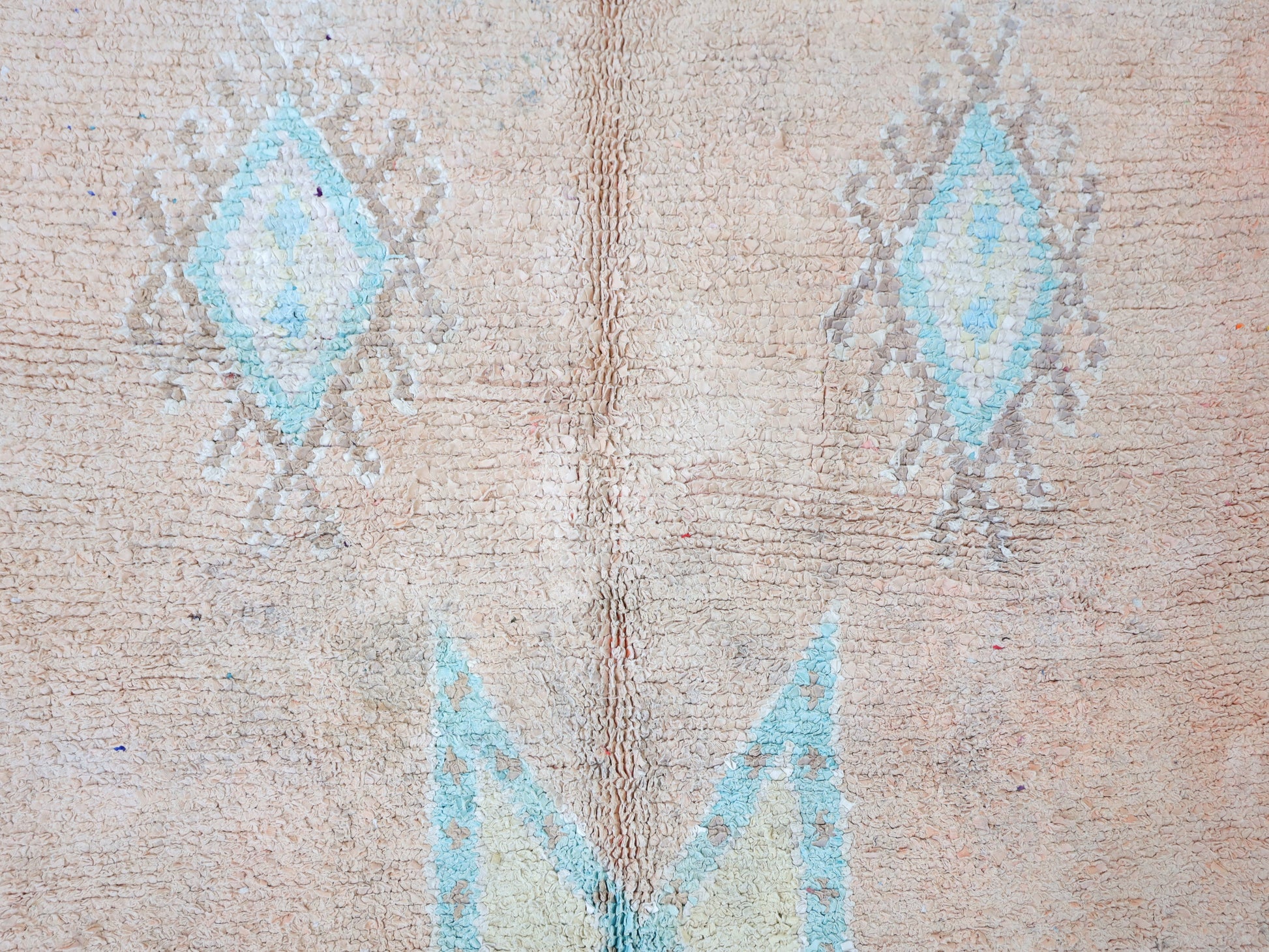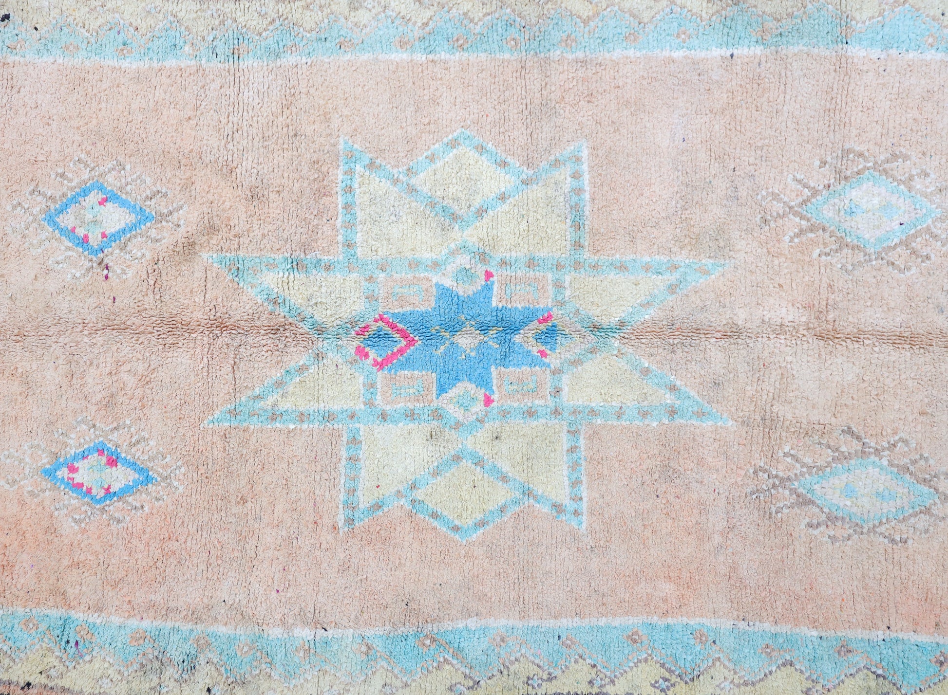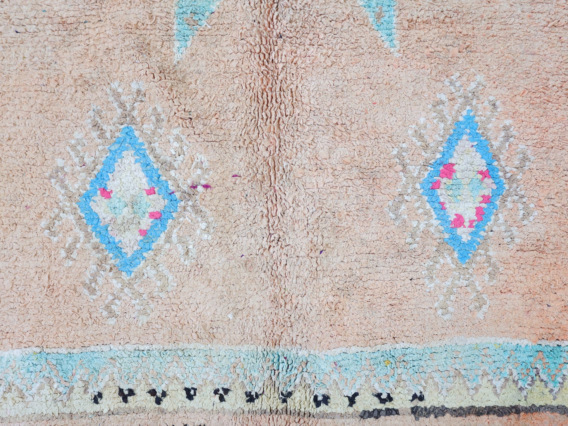 A singular moroccan rug, meticulously woven in the small city of Boujaad in Morocco's Chaouia-Ouardigha region.
